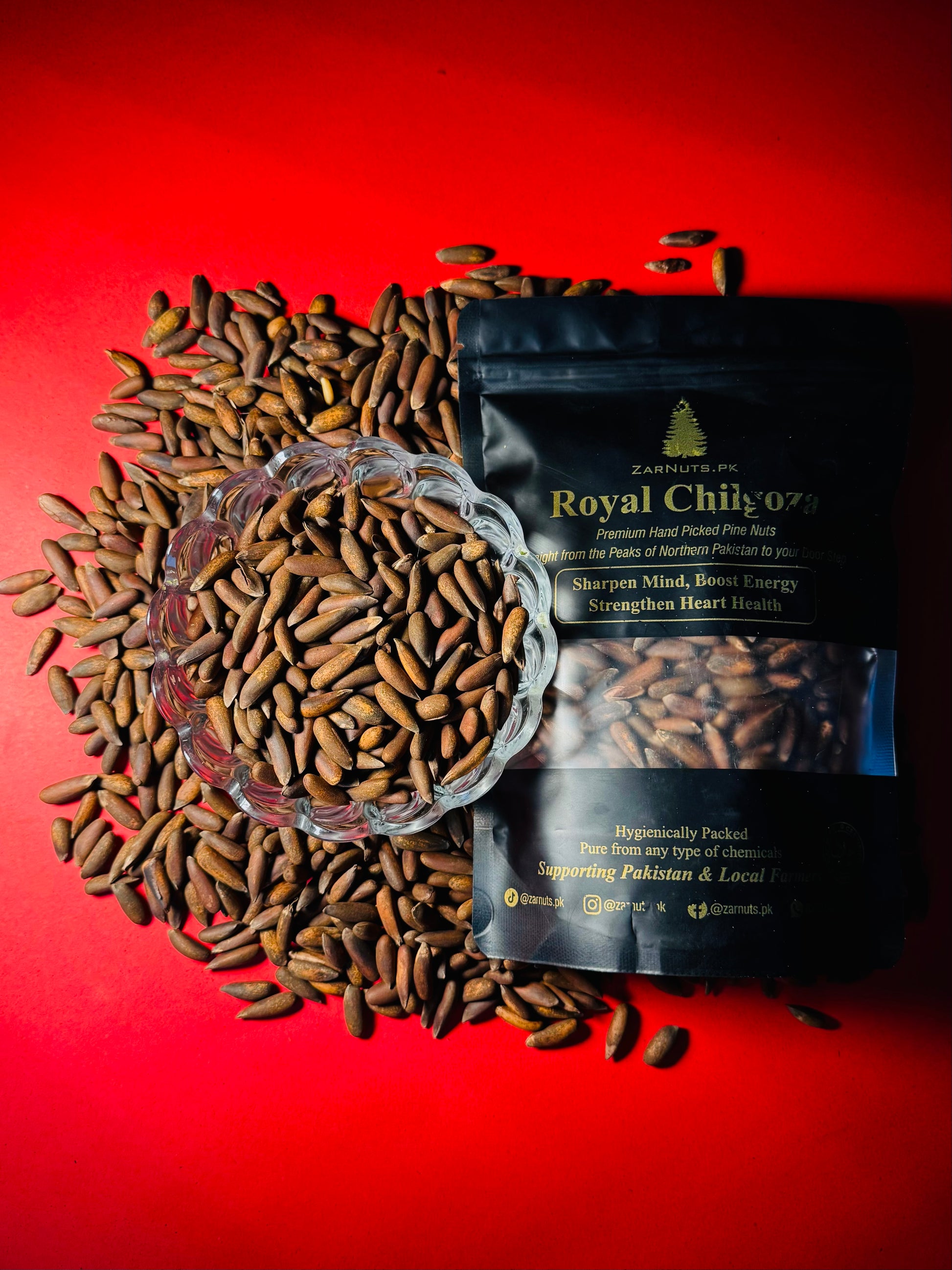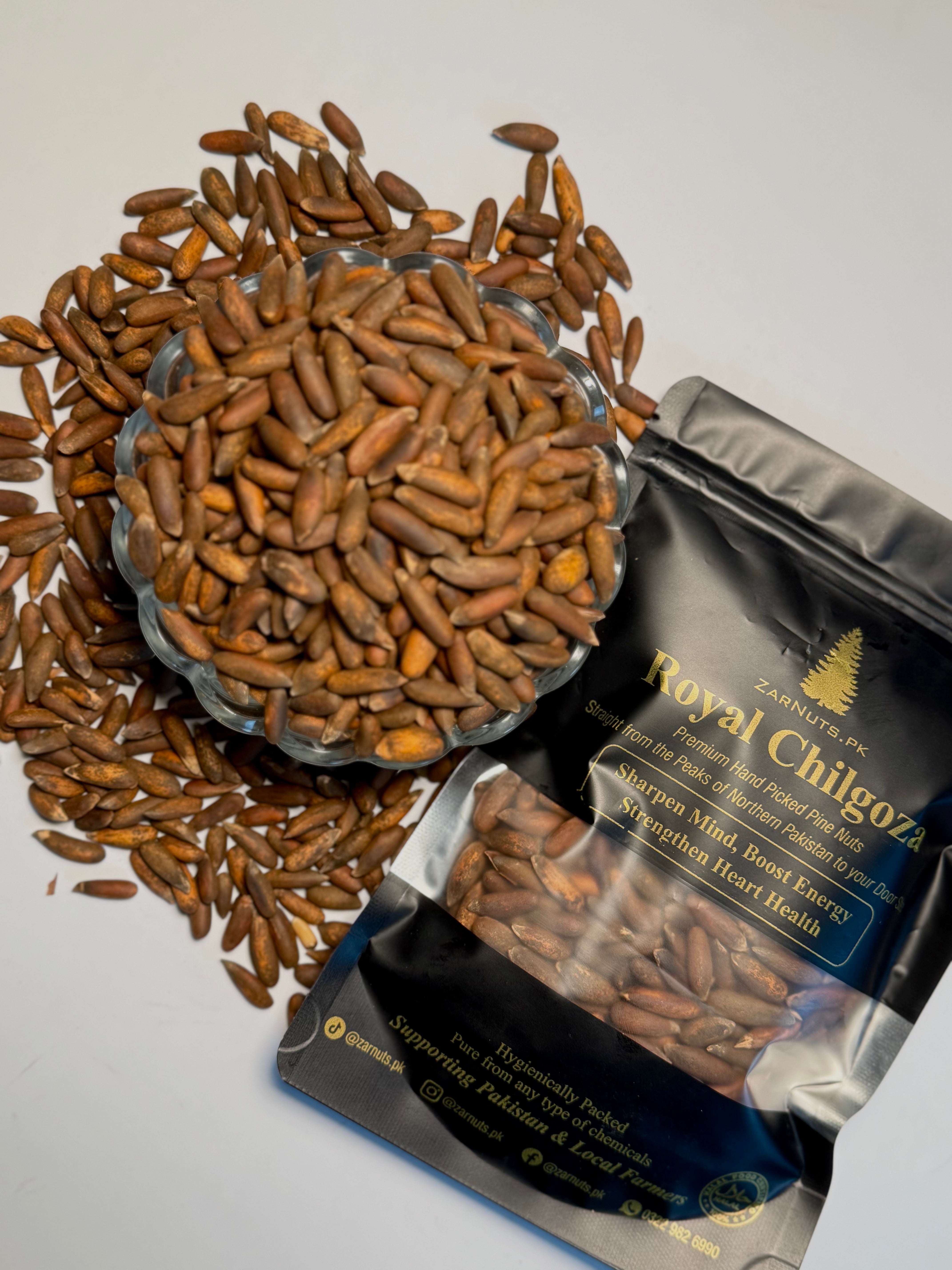 Chilgoza (pine nuts) is one of Pakistan's most prized natural treasures, harvested from the majestic pine forests of the Himalayan and Sulaiman mountain ranges. Our 500g pack of premium Chilgoza brings you the finest quality pine nuts, carefully sourced from the high-altitude regions of Balochistan, Khyber Pakhtunkhwa, and Gilgit-Baltistan. Known locally as چلغوزہ (Chilghoza), these nutrient-dense nuts have been a staple in Pakistani cuisine and traditional medicine for centuries.
